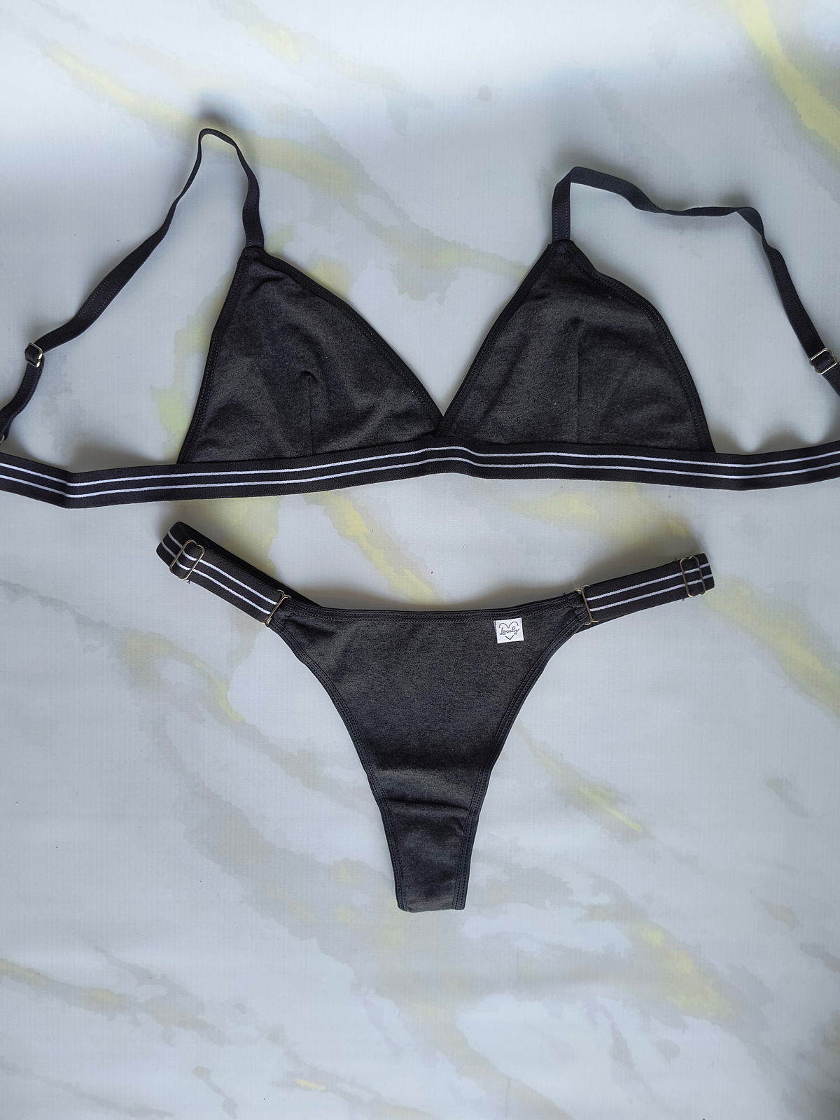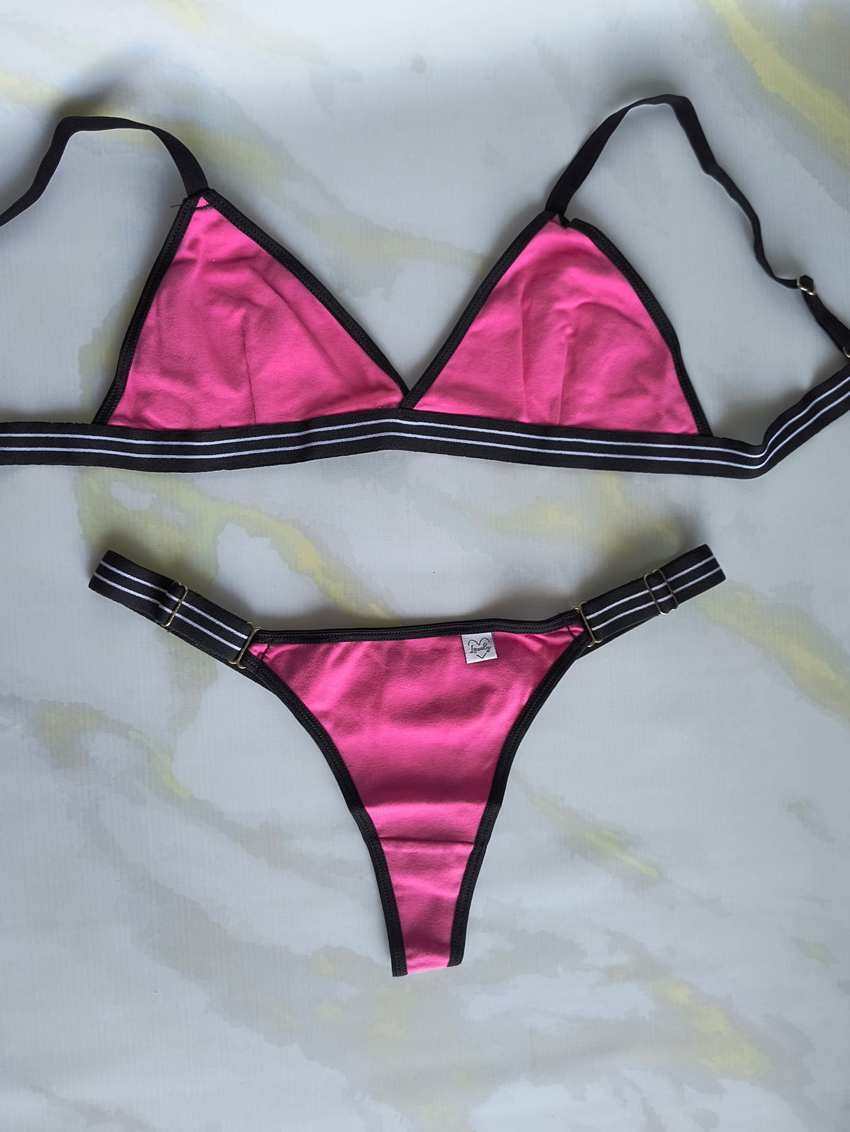 Set de corpiño triangulito de algodón + less regulable con elástico super ancho