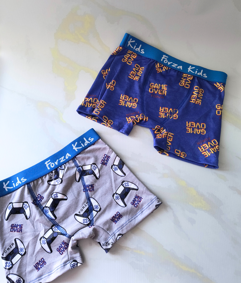 Boxer de niño estampado con refuerzo de algodon interno en la parte de adelante.